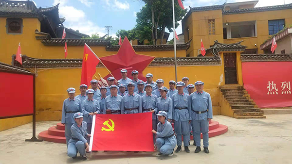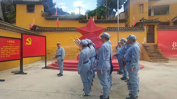 换了红军服以后到柯渡纪念馆参观,并在广场重温入党誓词及合影留念。该馆是为纪念红军长征而修建的。纪念馆主要包括中央红军总部长征驻地旧址、总参谋部作战室、毛泽东、周恩来、刘伯承、朱德等同志长征路居丹桂村的休息室及烈士遗物。展馆内运用多媒体声光手段,以影片、视频等方式真实再现当年红军长征史事,并将当年红军使用过的马灯、草鞋等实物陈列布展。1983年纪念馆被省政府公布为第一批全国重点文物保护单位,1992年被确定为省近、现代史及国情教育基地,1997年被省委、省政府命名为云南省爱国主义教育基地。