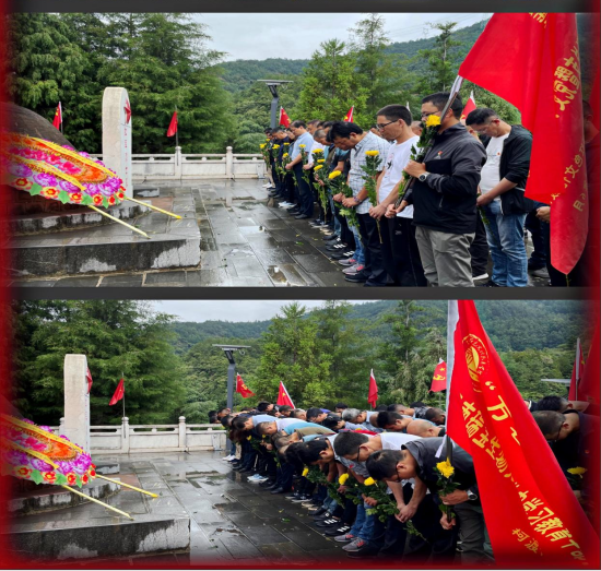 悼念仪式:大家沿着台阶,登上山顶去缅怀革命先烈。所有学员面对红军墓,对在六甲之战中牺牲的红军进行深痛的哀悼,珍惜现在,缅怀先烈!