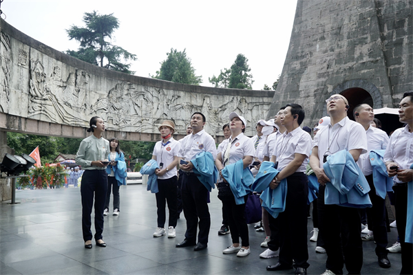 7月21日,全体学员乘动车从昆明出发,到达遵义的第一个红色传承教育站点是红军山烈士陵园。红军山烈士陵园纪念碑巍然屹立,庄严雄伟。在红军山,学员们通过向革命烈士敬献花篮仪式向革命英烈表达缅怀之情。随后,在讲解员的带领下,学员们开展了微党课教学,并在红军坟前聆听了催人泪下的红军卫生员故事。