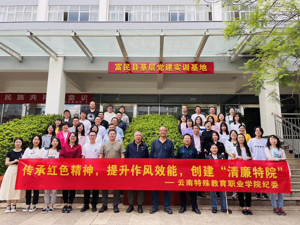 为深入学习贯彻习近平在党史学习教育动员大会上的重要讲话精神,按照机关党委《关于学习贯彻习近平总书记在党史学习动员大会上的讲话精神的通知》的要求,把党史学习教育与深入学习贯彻习近平新时代中国特色社会主义思想结合起来,与巩固“不忘初心、牢记使命”主题教育成果结合起来,学党史、悟思想、办实事、开新局,推动党史学习教育成果转化为改革发展的责任担当。2022年5月28日至29日云南特殊职业教育学院纪委在富民、寻甸柯渡开展“传承红色精神,提升作风效能,创建“清风特院””主题教育培训班。此次学习活动由中红培教育投资(云南)有限公司承办。